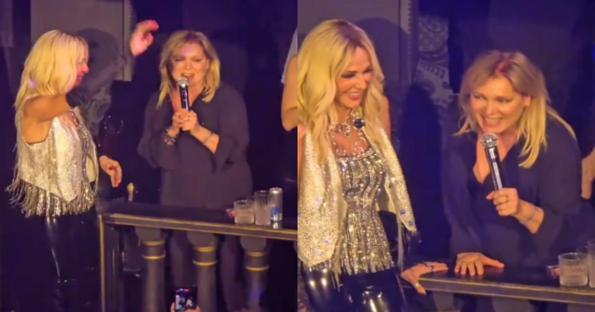 Σε μια στιγμή χαλαρής διάθεσης, η Άννα Βίσση έδωσε το μικρόφωνο στη Μαρία Καβογιάννη, προσκαλώντας τη να συμμετάσχει στο πρόγραμμα. Η αγαπημένη ηθοποιός δεν δίστασε ούτε δευτερόλεπτο. Με χαμόγελο και εμφανή διάθεση για πλάκα, ξεκίνησε να «ερμηνεύει» το θρυλικό I Will Survive, με έναν εντελώς δικό της τρόπο.