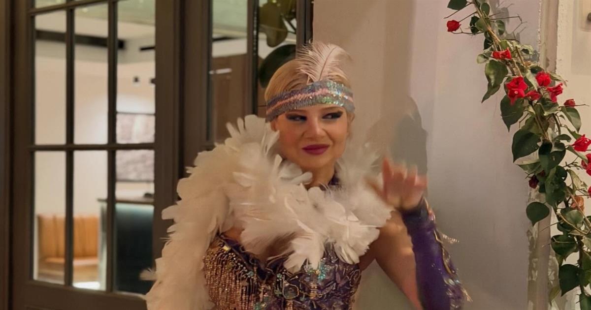 Η παρουσιάστρια μπήκε σε γιορτινό κλίμα την Κυριακή της Αποκριάς, επιλέγοντας ένα εντυπωσιακό, vintage look. Συγκεκριμένα, φόρεσε μια μωβ, λαμπερή δημιουργία και ολοκλήρωσε την εμφάνισή της με φτερά και μια εντυπωσιακή κορδέλα, δίνοντας έναν αέρα παλιάς εποχής που ταίριαζε απόλυτα με το κλίμα των ημερών.